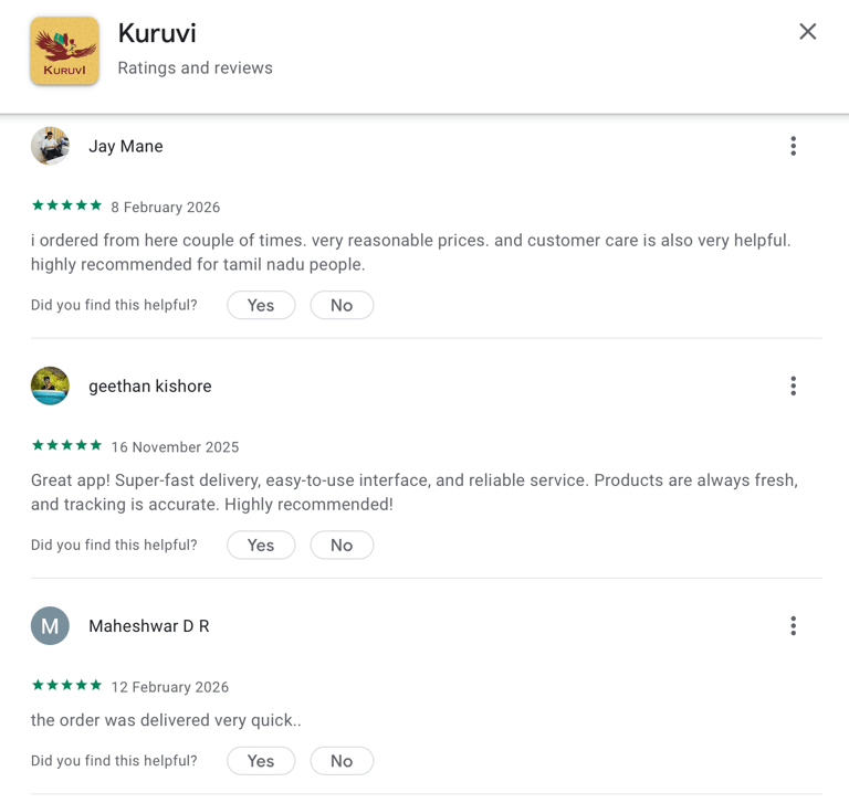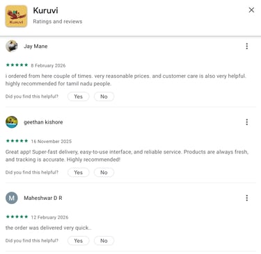 Kuruvi Q-Commerce is currently operating in 3 villages in Chengalpattu district, Tamil Nadu, delivering daily essentials through our rural dark-store model.